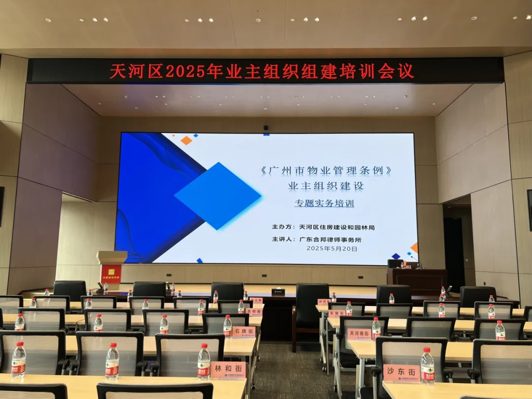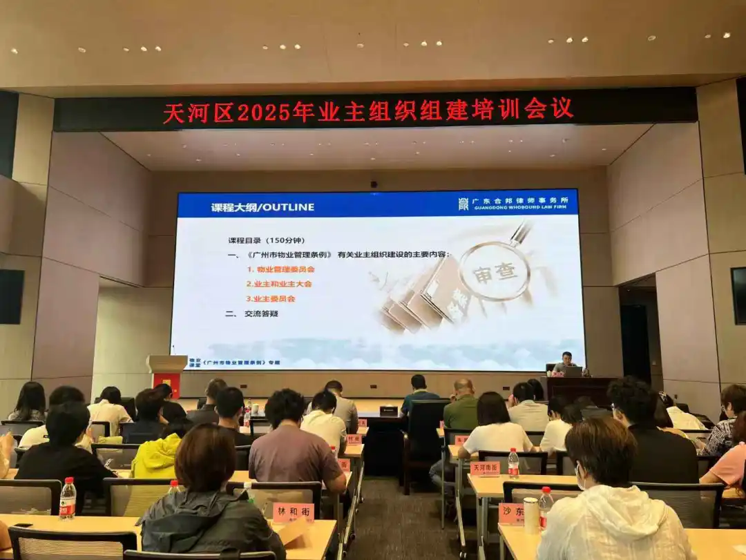 2025年5月20日,我所高级合伙人、物业管理法律团队负责人龚敏律师应广州市天河区住房建设和园林局邀请,开展以“业主组织建设”为专题的法律培训。